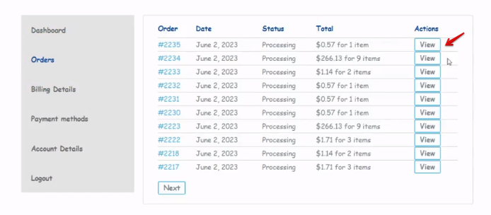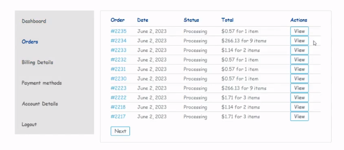 Viewing Orders: In the “Orders” , you can review your order history. This includes details of the products you have purchased, along with the order date, order number, and order status.